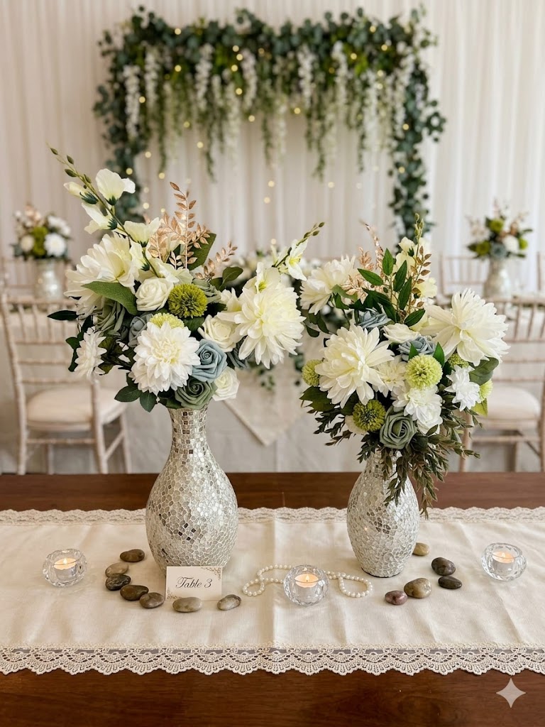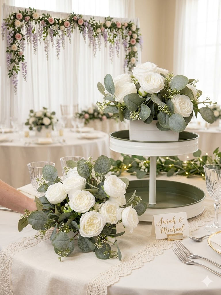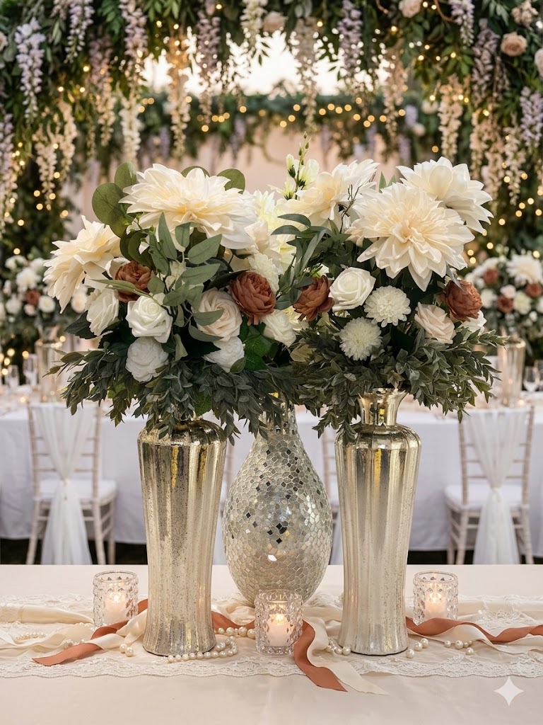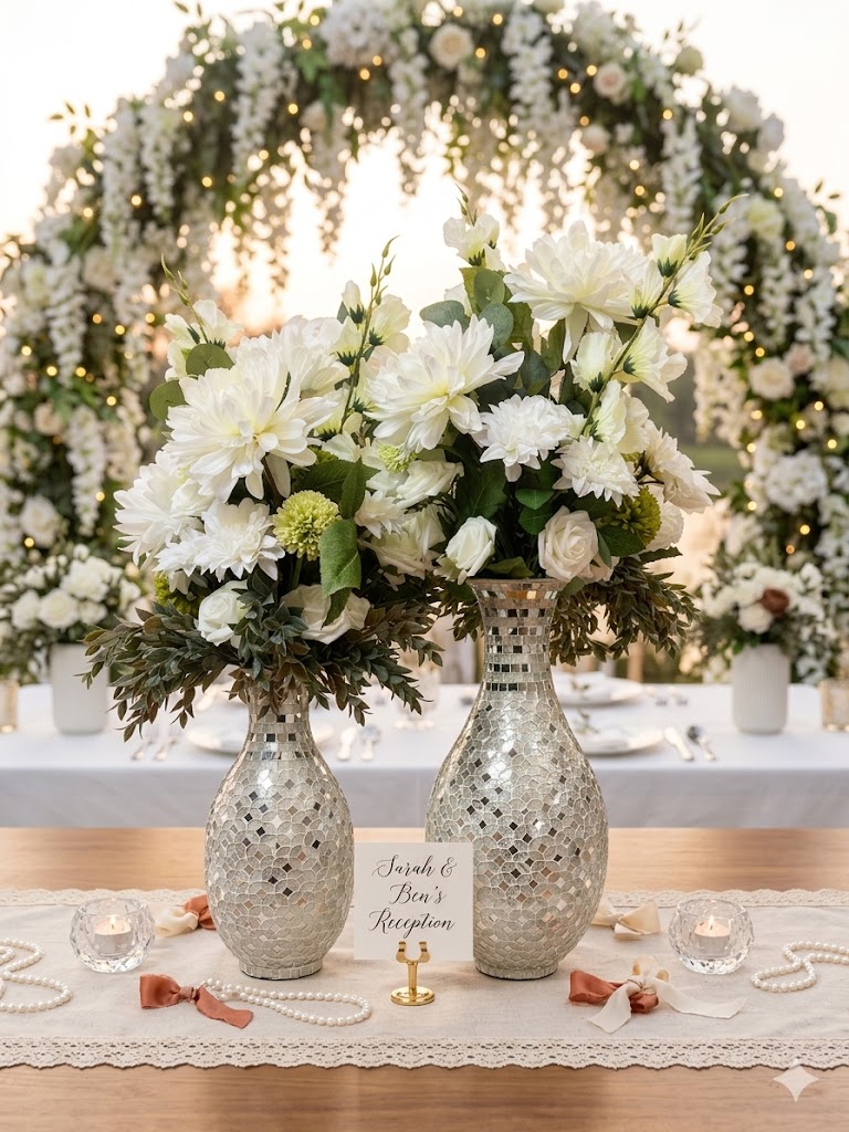 Elevate your event with budget-friendly rentals: arches, backdrops, centerpieces, florals, candles, serving dishes, and stylish table signs.
