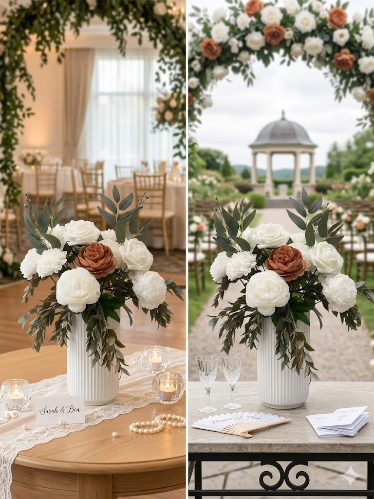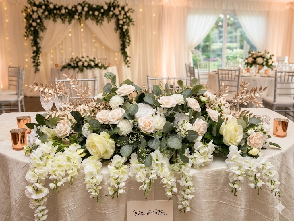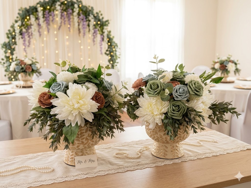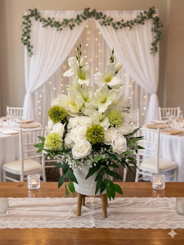 Elevate your event with budget-friendly rentals: arches, backdrops, centerpieces, florals, candles, serving dishes, and stylish table signs.